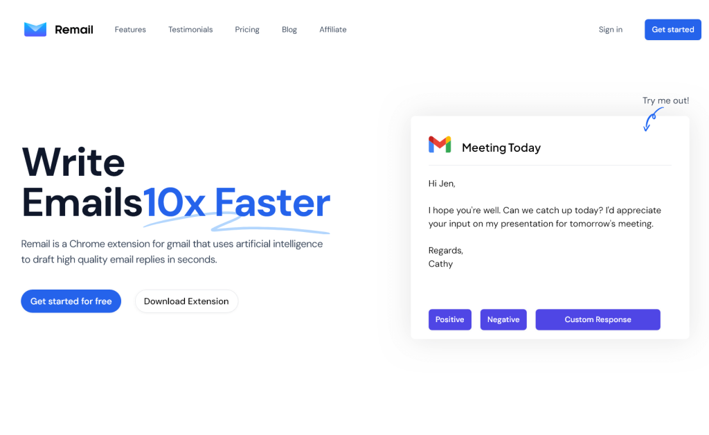 Remail AI is a Chrome extension for Gmail users that leverages artificial intelligence to assist in composing high-quality email replies quickly and ...